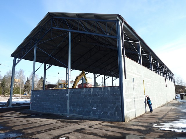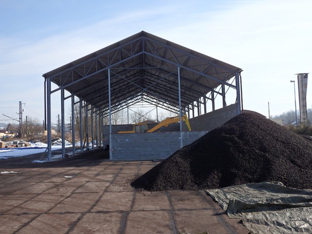 Sloupy u manipulační haly jsou pozinkované. Hala je ukotvena na silniční panely a obvodový betonový pas. Hala má svůj okapový systém.