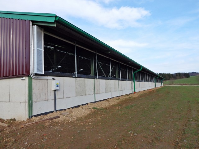 Plechová montovaná hala – kravín u obce Dvorce, okr. Opava