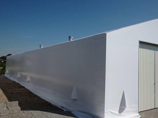 Na přání zákazníka jsme nechali celou ocelovou konstrukci haly pozinkovat. Montovaná hala má na střeše samočinné ventilační turbíny pro větší cirkulaci vzduchu v hale.Parametry haly