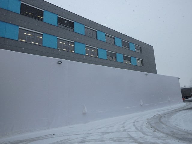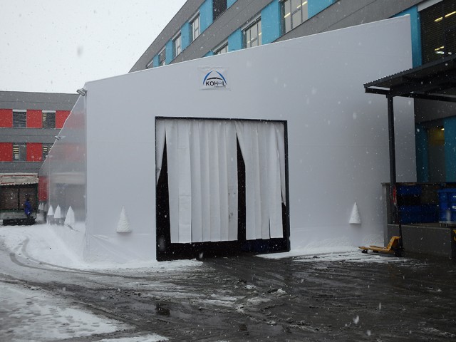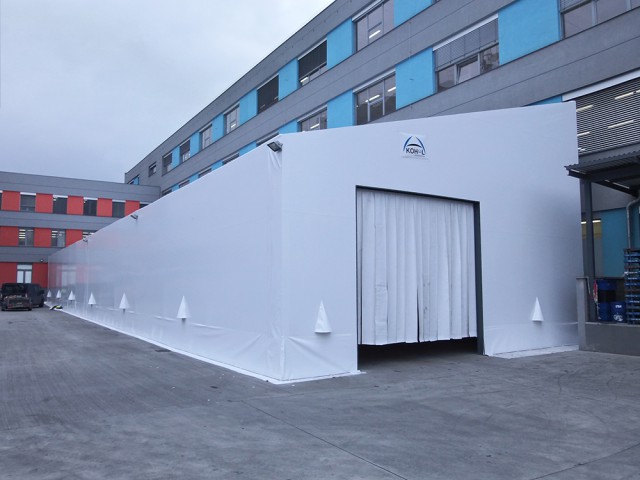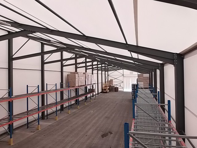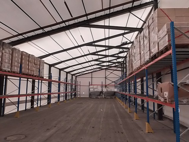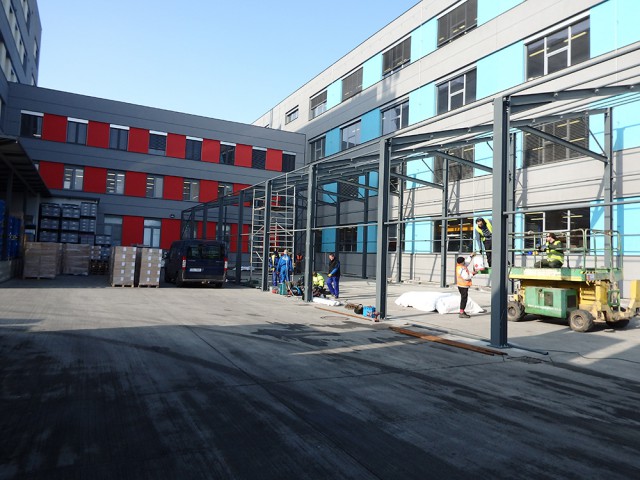 Skladová pultová hala je těsně umístěna vedle administrativní budovy. Hala je ukotvena na betonovou plochu. Montovaná hala má na střeše samočinné ventilační turbíny pro větší cirkulaci vzduchu v hale.